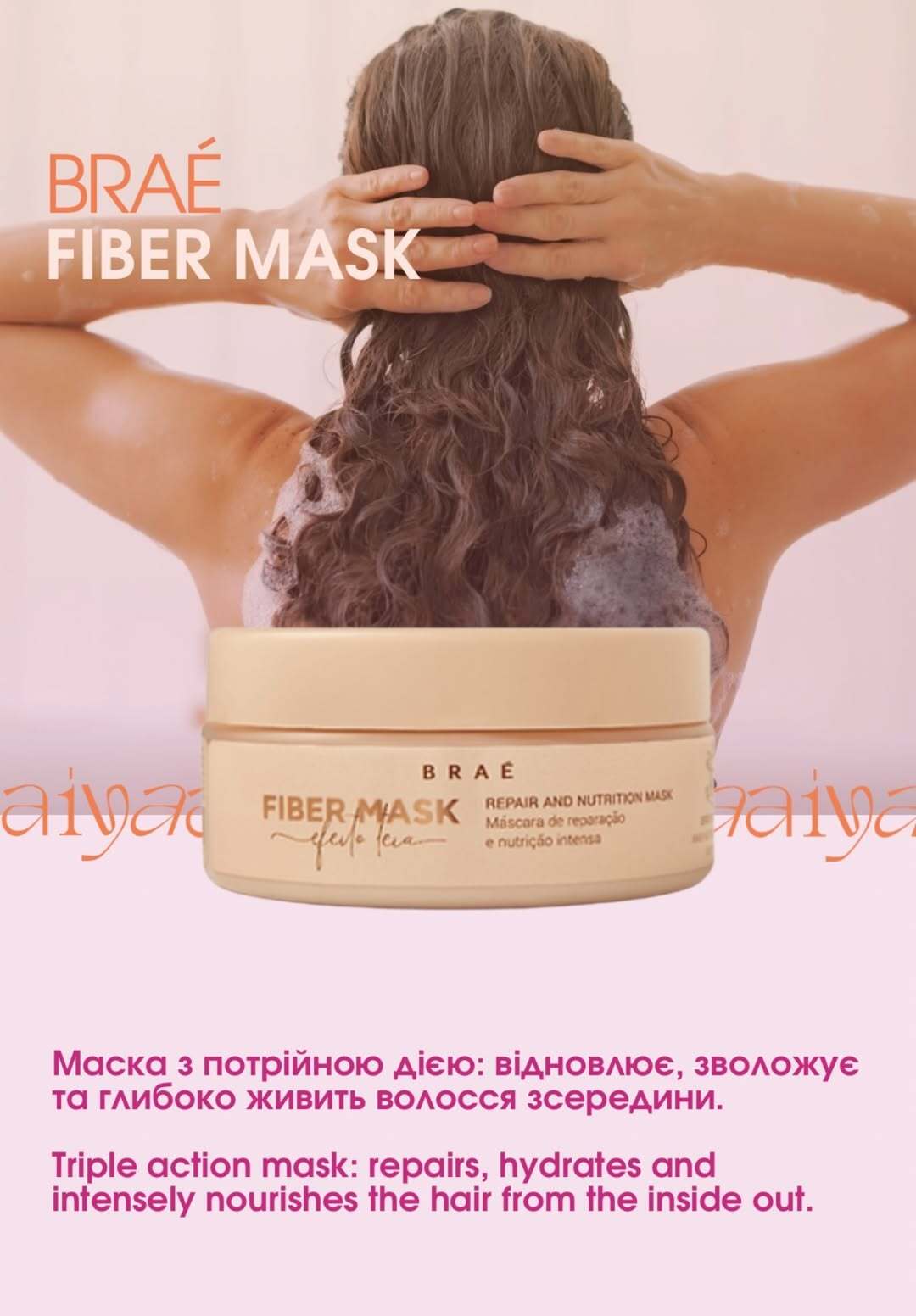 Aiya Beauty Care представляє Braé Fiber Mask — потужний засіб, створений для ретельного відновлення та зміцнення ламкого, хімічно обробленого або пошкодженого волосся. Завдяки передовій технології відновлення волокон, кератину та живильних олій, ця маска проникає глибоко в стрижень волосини, відновлюючи його структуру, покращуючи еластичність і запечатуючи неприємні посічені кінчики. Її багата, кремова текстура забезпечує гідратацію салонного рівня, залишаючи волосся гладким, блискучим і стійким. Ідеально підходить для щотижневого використання, Braé Fiber Mask вдихає нове життя у пошкоджені пасма, повертаючи м'якість і силу зсередини назовні.